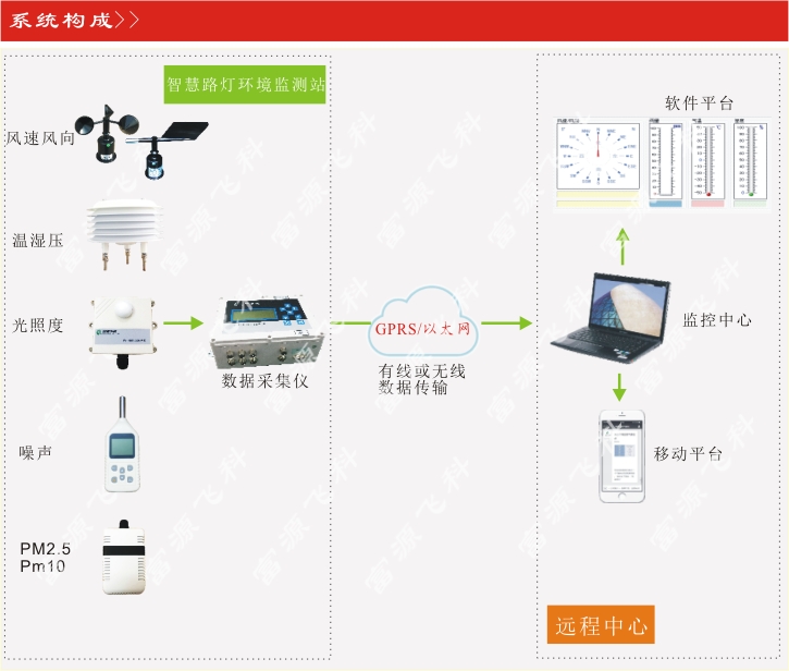 FY-WSC2000智慧路燈環(huán)境監(jiān)測(cè)站可集成在智慧照明路燈燈桿,通過(guò)智慧路燈的網(wǎng)格化布局,實(shí)現(xiàn)對(duì)城市環(huán)境的實(shí)時(shí)在線監(jiān)測(cè)。常規(guī)監(jiān)測(cè)數(shù)據(jù)包括風(fēng)速、風(fēng)向、溫度、濕度、氣壓、光照度、紫外、環(huán)境噪聲、PM2.5、PM10等,監(jiān)測(cè)要素可根據(jù)需要進(jìn)行選配。