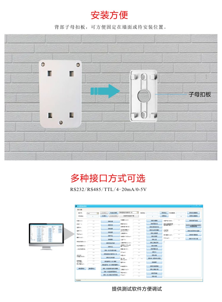 ·具有多種數據接口,支持RS232,RS485,電壓、電流輸出等。