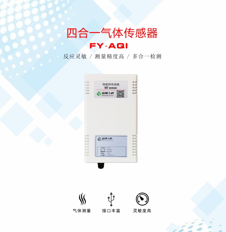 例如:FY-AQI-12V-W2:四合一氣體傳感器:12V供電,RS485信號(hào)輸出 |