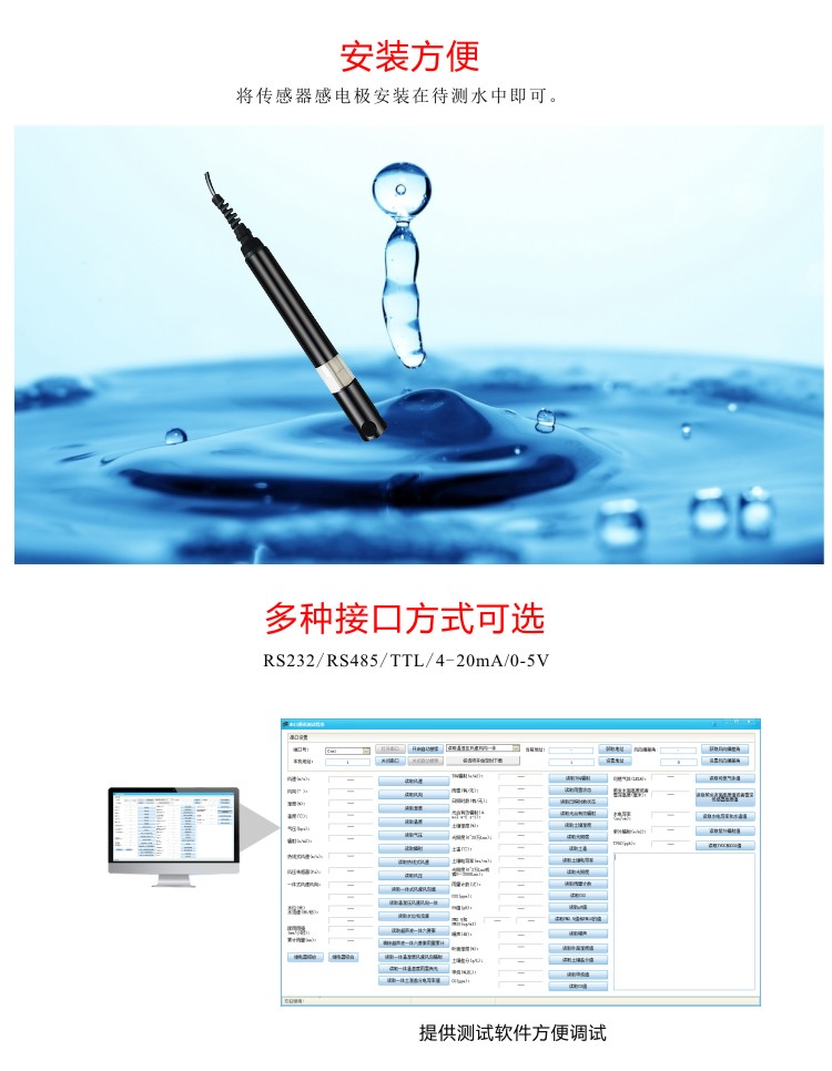 ● 尺寸小巧,安裝更為便捷,可在線不間斷進行水質監測