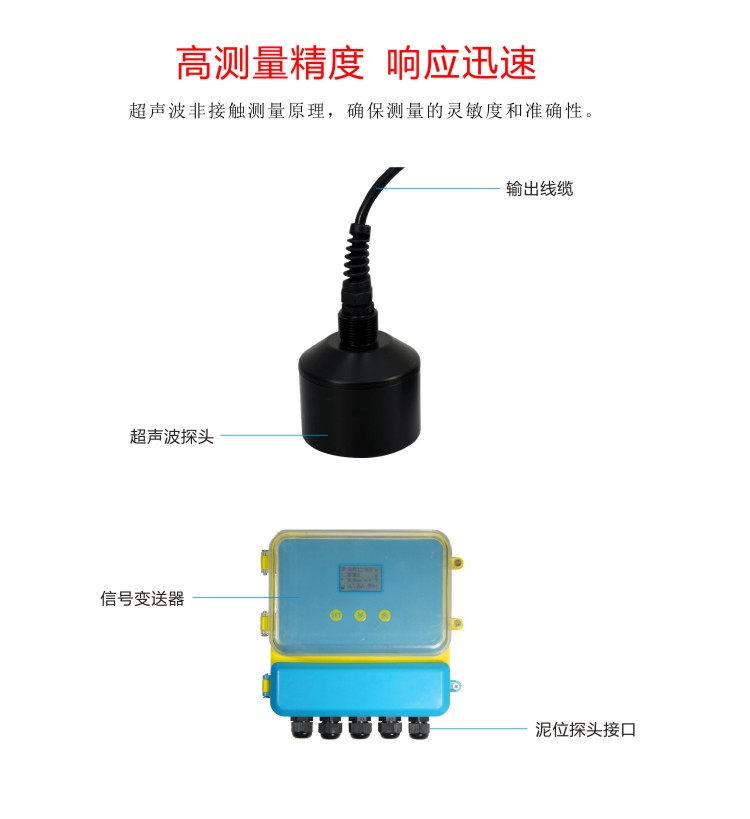 FY-SNW系列泥位傳感器基于超聲波測(cè)量原理,通過超聲波換能器超發(fā)射的聲波部分或全部被分層界面反射并重新被換能器所接受到。分層界面是由于測(cè)量介質(zhì)密度改變而形成的,如污泥界面層、池子底部等。通過反射的間隔時(shí)間,就能檢測(cè)出超聲波換能器和分層界面之間的距離。