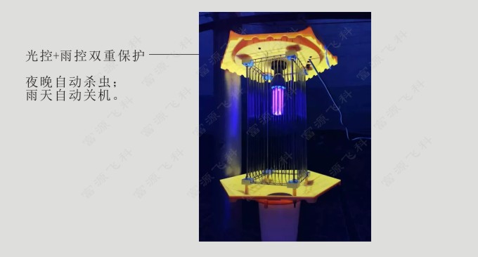7、低溫保護:當空氣溫度低于5攝氏度左右(誤差±5%),殺蟲燈進入自動休眠狀態(tài),可增加蓄電池的使用壽命。