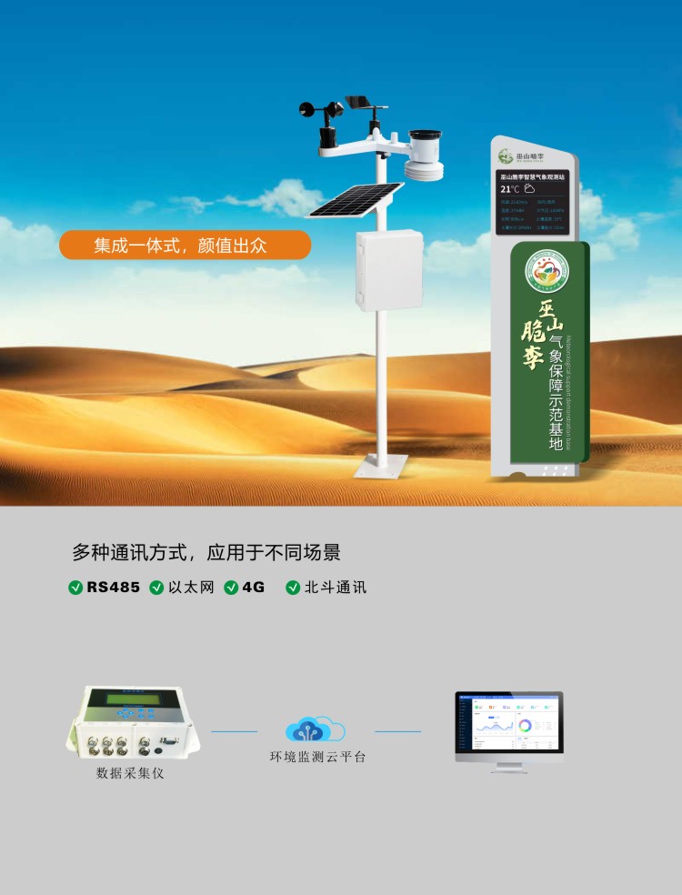 FY-FARM200系列農(nóng)業(yè)氣象站,可對(duì)風(fēng)速、風(fēng)向、溫度、濕度、氣壓、雨量、光照、輻射、土壤溫濕度、鹽分、電導(dǎo)率、PM2.5等進(jìn)行同步測(cè)量。采用進(jìn)口傳感元件作為感應(yīng)部件,具有測(cè)量精度高、穩(wěn)定性好等特點(diǎn),傳感器采用先進(jìn)的電路集成模塊,可根據(jù)用戶的不同需求輸出RS232、RS485、4G等通訊方式傳輸。儀器體積小巧,安裝方便且便攜,性能可靠;可廣泛應(yīng)用于氣象觀測(cè)、環(huán)境控制、農(nóng)業(yè)、工廠等諸多領(lǐng)域。