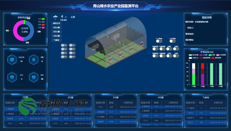 智慧農業(yè)監(jiān)測系統(tǒng)可以對各項環(huán)境要素以及園區(qū)設備的運行狀態(tài)等數據進行實時監(jiān)控和實時上傳,可以協(xié)助相關工作人員對影響作物生長的環(huán)境要素進行充分、合理的調控,從而實現發(fā)揮此地農業(yè)生產優(yōu)勢,規(guī)避不良環(huán)境影響的功能。