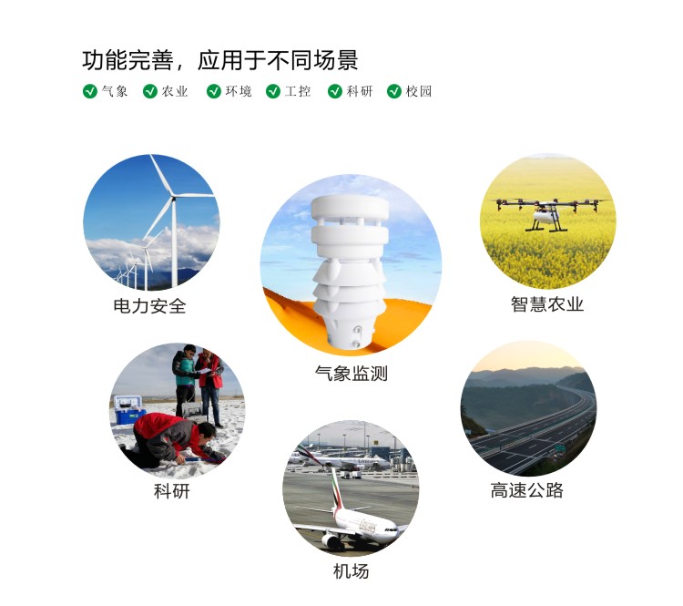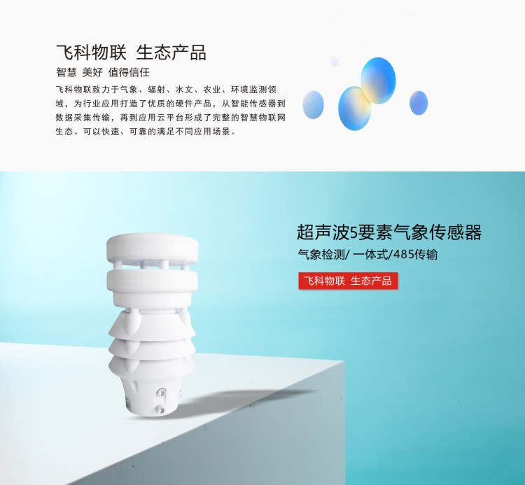 FY-QA500超聲波5要素傳感器采用超聲波原理,一體式結(jié)構(gòu)可對風速、風向、溫度、濕度、氣壓等進行同步測量。采用高精度傳感元件作為感應部件,具有測量精度高、穩(wěn)定性好等特點,傳感器采用先進的電路集成模塊,可根據(jù)用戶的不同需求輸出RS232、RS485、4G等通訊方式傳輸。儀器體積小巧,安裝方便且便攜,性能可靠;可廣泛應用于氣象觀測、環(huán)境控制、農(nóng)業(yè)、工廠等諸多領域。