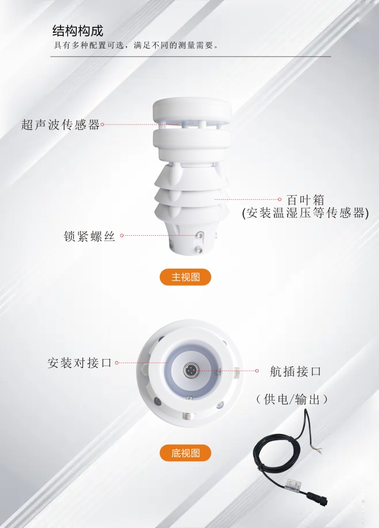 ●原理為發(fā)射連續(xù)變頻超聲波信號,通過測量相對相位來檢測風速風向;