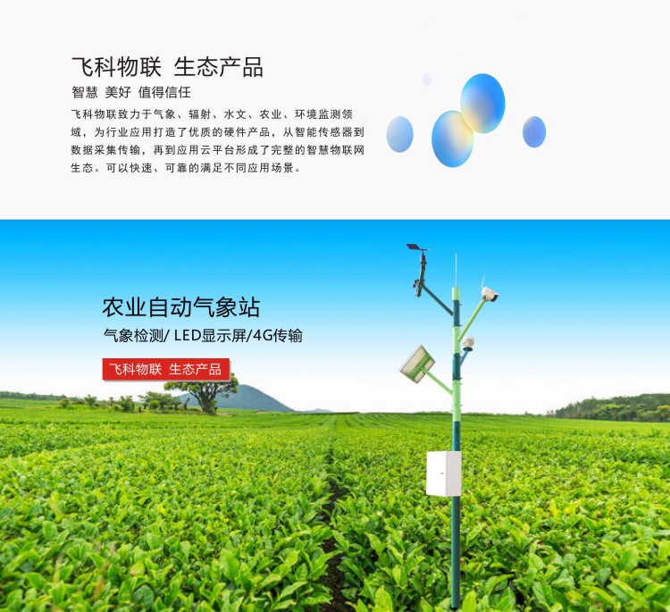 FY-FARM300系列農業氣象站,可對風速、風向、溫度、濕度、氣壓、雨量、光照、輻射、土壤溫濕度、鹽分、電導率、PM2.5等進行同步測量。采用進口傳感元件作為感應部件,具有測量精度高、穩定性好等特點,傳感器采用先進的電路集成模塊,可根據用戶的不同需求輸出RS232、RS485、4G等通訊方式傳輸。儀器體積小巧,安裝方便且便攜,性能可靠;可廣泛應用于氣象觀測、環境控制、農業、工廠等諸多領域。