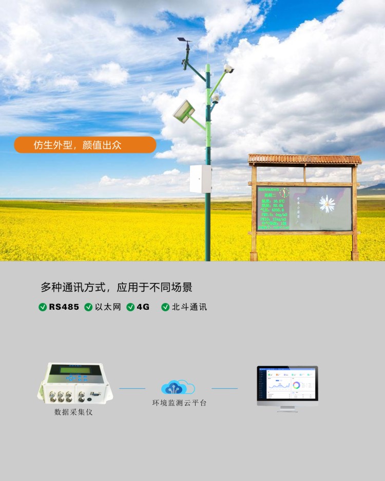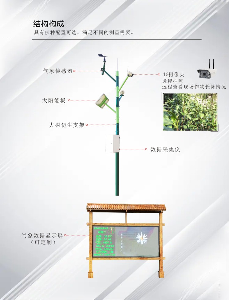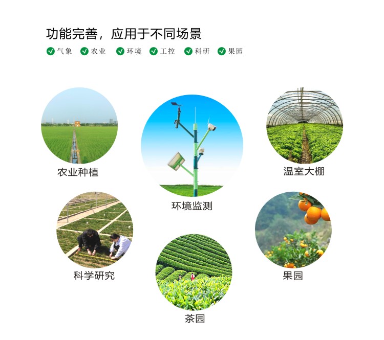 ●測量風速、風向、溫度、濕度、氣壓、雨量、光照、輻射、土壤溫濕度、鹽分、電導率、PM2.5等;