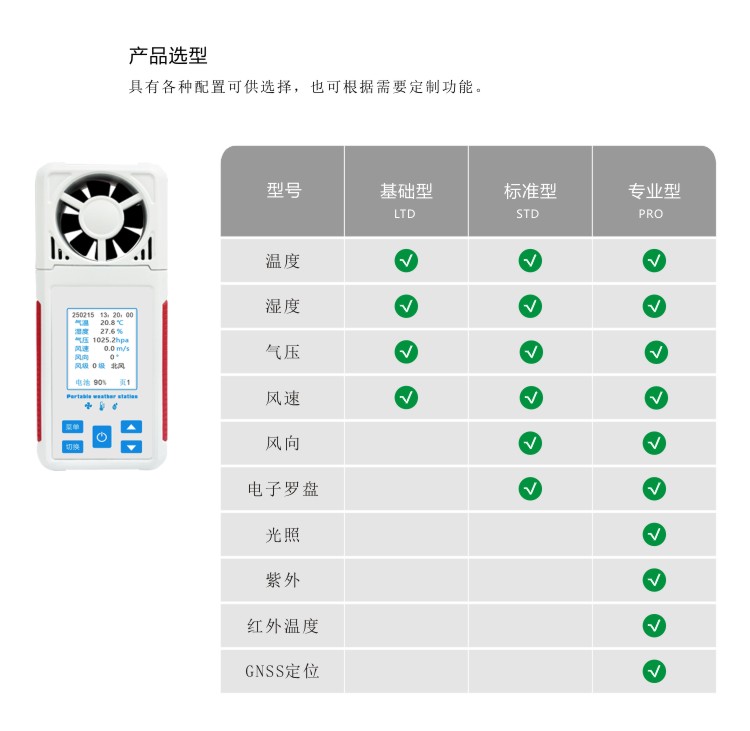 FY-Q8袖珍手持氣象站是一款攜帶方便,操作簡(jiǎn)單,集多項(xiàng)氣象要素于一體的可移動(dòng)式氣象觀測(cè)儀器。系統(tǒng)采用精密傳感器及智能芯片,用于測(cè)量風(fēng)速,風(fēng)向、溫度,濕度,露點(diǎn),大氣壓力,BF 薄福,風(fēng)寒指數(shù),海拔高度、光照、紫外、跑道溫度等數(shù)據(jù),并可擴(kuò)展GPS定位功能。內(nèi)置大容量FLASH存儲(chǔ)芯片可存儲(chǔ)至少一年的氣象數(shù)據(jù);通用USB通訊接口,使用配套的USB線纜即可將數(shù)據(jù)下載到電腦,方便用戶對(duì)氣象數(shù)據(jù)的進(jìn)一步處理分析。本儀器可用于農(nóng)林、環(huán)保、海洋、科學(xué)考察等領(lǐng)域。
