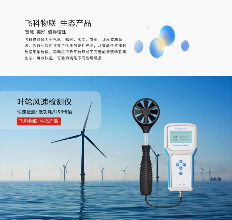 FY-TH210葉輪風(fēng)速檢測(cè)儀是一款攜帶方便,操作簡(jiǎn)單的便攜式環(huán)境檢測(cè)設(shè)備。低功耗大屏液晶時(shí)顯示風(fēng)速值,對(duì)微風(fēng)反應(yīng)靈敏,測(cè)量范圍寬,可滿足各種環(huán)境風(fēng)速檢測(cè)要求。內(nèi)置大容量FLASH存儲(chǔ)芯片可存儲(chǔ)9萬條歷史數(shù)據(jù);通用USB通訊接口,使用配套的USB線纜即可將數(shù)據(jù)下載到電腦,也可通過4G將數(shù)據(jù)傳輸至云平臺(tái),方便用戶對(duì)氣象數(shù)據(jù)的進(jìn)一步處理分析。