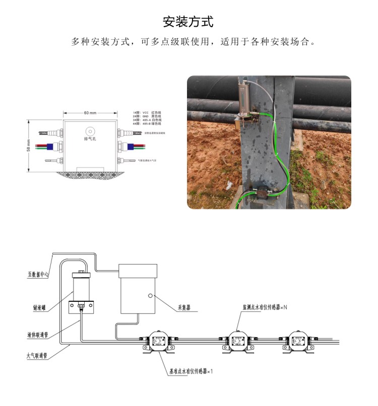 ●采用壓力傳感器測量液體的壓差,通過之前的標定擬合,從而對監測物體的沉降實現直接、直觀的監測;