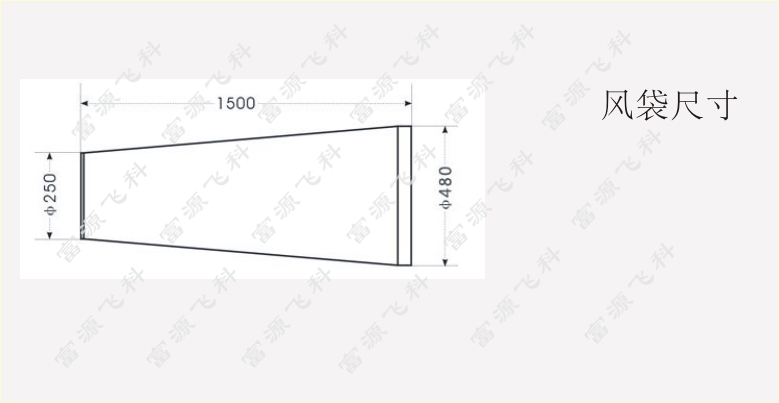 風(fēng)向袋:進(jìn)風(fēng)口直徑480mm,出風(fēng)口直徑250mm, 長(zhǎng)度1500mm。