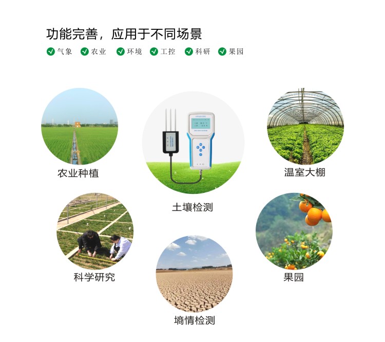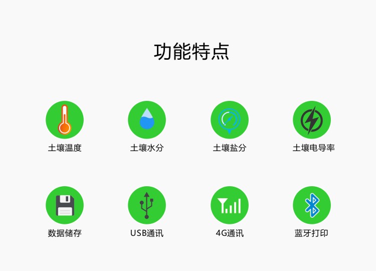 ●測量土壤溫度、土壤水分、土壤鹽分、土壤電導率、PH等數據;