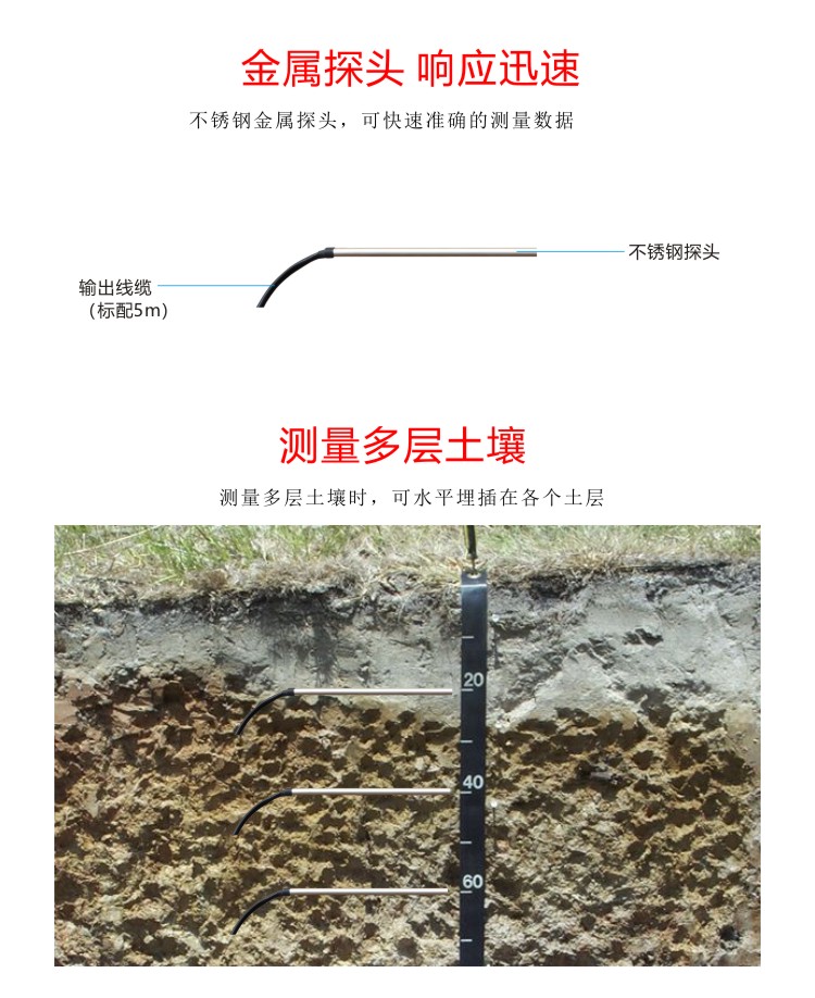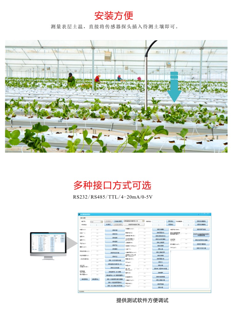 FY-T2土壤溫度傳感器采用進口高精度溫敏器件,具有測量精度高、穩定性好等特點。本產品體積小巧,安裝方便,傳輸距離長,抗干擾能力強。可廣泛用于氣象、溫室、環境、灌溉、實驗室、工農業及交通等領域的溫度測量。